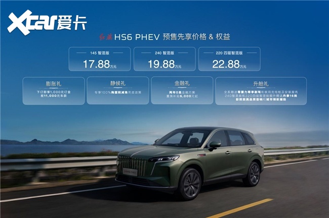 无燃油版聚焦新能源赛道作为红旗品牌面向家庭市场的战略车型,红旗HS6已正式公布预售价格:145智混版预售17.88万元,240智混版预售19.88万元,220四驱智混版预售22.88万元。为回馈消费者期待,新车同步推出膨胀礼、升舱礼、静候礼、金融礼等多重先享权益,逐步降低家庭购车门槛。有必要注意一下的是,这款聚焦新能源赛道的重磅车型并无燃油版本,完全以混动技术响应绿色出行趋势,成为“20万级中大型新能源SUV推荐”中的焦点选手。
